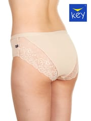 Figi damskie o kroju bikini, wyższym kroju z szerszymi bokami. Uniwersalny krój dla każdej sylwetki. Wykonane z delikatnej i antyalergicznej bawełny. Z tyłu elegancka koronka. Pakowane po dwie sztuki. Skład: 95% bawełna, 5% elastan.