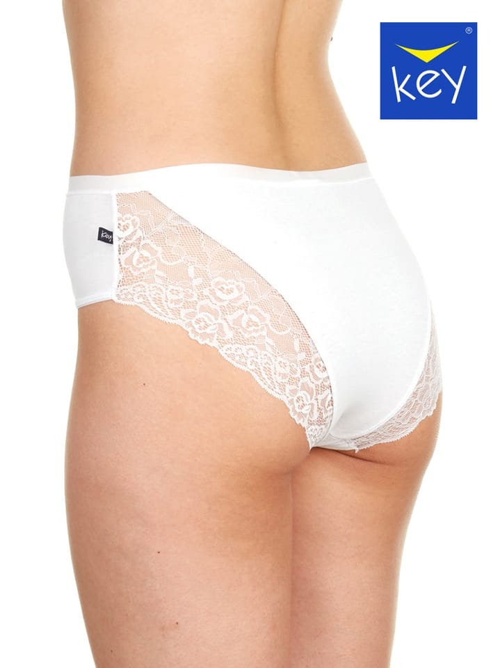 Figi damskie o kroju bikini wykonane z delikatnej i antyalergicznej bawełny 95% z dodatkiem elastanu. Z tyłu elegancka koronka. Pakowane po dwie sztuki.
