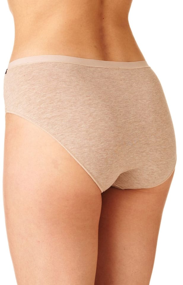 Figi o wysokiej linii pasa okrywającej brzuch i z zabudowanymi bokami. Pełny tył majtek w połowie wykończony szeroką koronką komfortowo okrywa pośladki. Skład: 95% bawełna, 5% elastan.