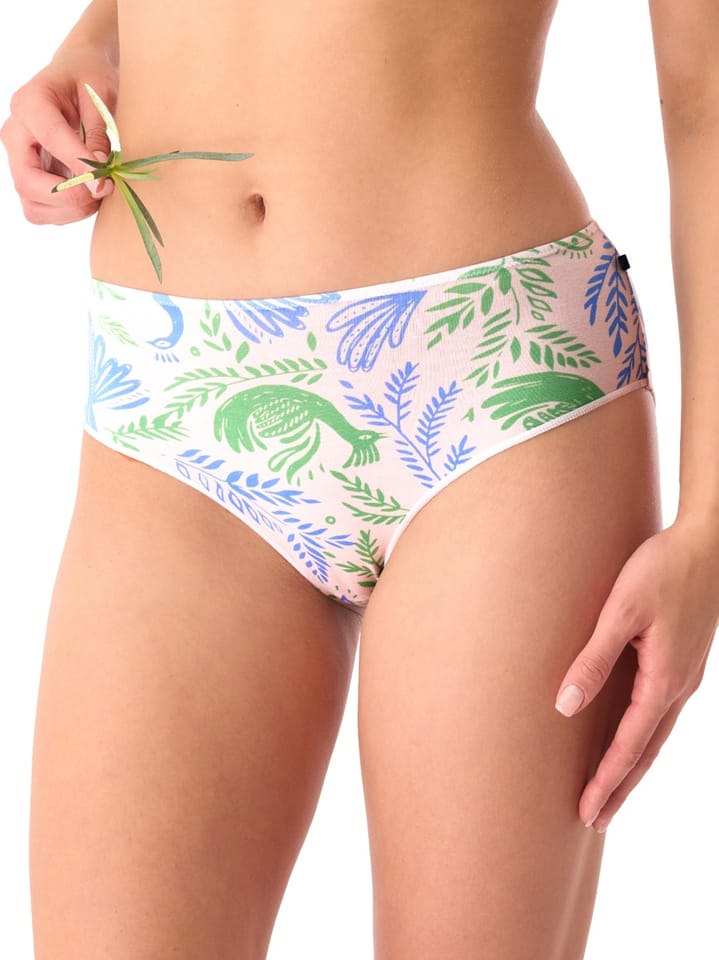 Figi damskie typu bikini wykonane z wysokiej jakości bawełny. Pakowane w pudełko po dwie sztuki. Skład: 95% bawełna, 5% elastan.