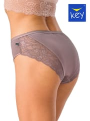 Figi damskie typu bikini wykonane z wysokiej jakości bawełny, ozdobione wstawką z delikatnej koronki, która dodaje uroku i delikatności. Pakowane w pudełko po dwie sztuki. Skład: 95% bawełna, 5% elastan.