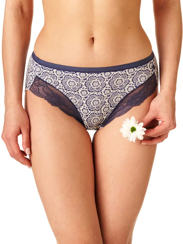 Figi damskie wykonane z wysokiej jakości bawełny połączonej z elastyczna koronką. Pakowane w pudełko po dwie sztuki. Krój midi zakrywający brzuch i pośladki.