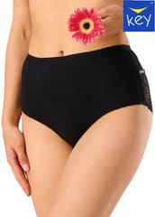 Figi damskie o wysokości do pępka, w całości zakrywające pośladki. W pasie miękka gumka pokryta gęstym, wygodnym, bardzo rozciągliwym szwem. Tył fig ozdobiony kwiatową, rozciągliwą koronką. Skład: 95% bawełna, 5% elastan.