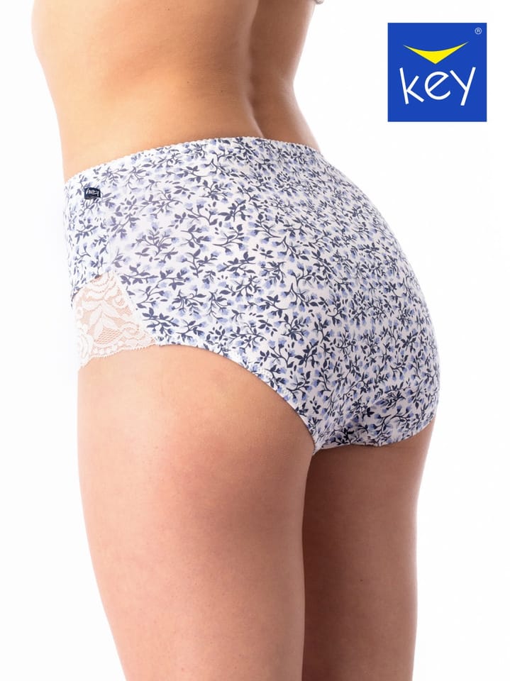 Figi damskie z wysokim stanem, zdobione koronką. Pakowane po dwie sztuki w kartonowe pudełko.Skład: 95% bawełna, 5% elastan.