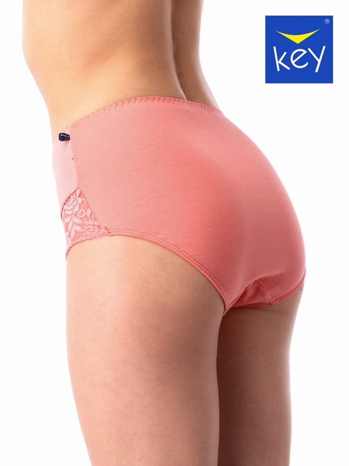 Figi damskie z wysokim stanem, zdobione koronką. Pakowane po dwie sztuki w kartonowe pudełko.Skład: 95% bawełna, 5% elastan.