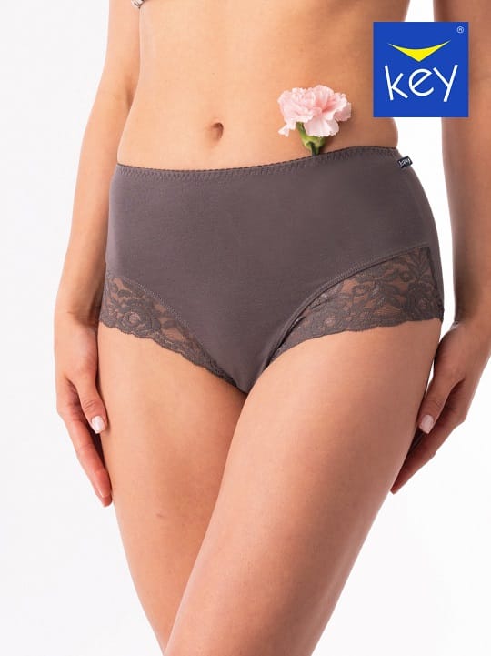 Figi damskie wykonane z wysokiej jakości dzianiny bawełnianej, zdobionej wstawkami z koronki. Krój wysoki zakrywający w pełni, brzuch, pośladki oraz dolną część pleców. Pakowane w pudełko po dwie sztuki.Skład: 95% bawełna, 5% elastan.