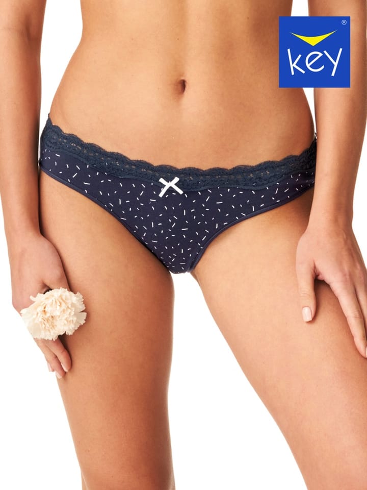 Figi damskie o kroju mini bikini z naturalnej bawełny z delikatnym obszyciem. Pakowane w pudełko po dwie sztuki. Skład: 95% bawełna, 5% elastan.