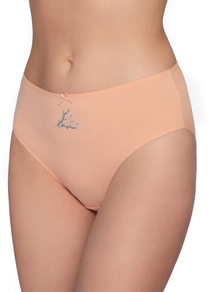 Bawełniane figi damskie o klasycznym kroju bikini z lekko zabudowanymi biodrami. W pasie płaska gumka z kokardką. Pakowane po 3 sztuki. Skład: 95% bawełna, 5% elastan