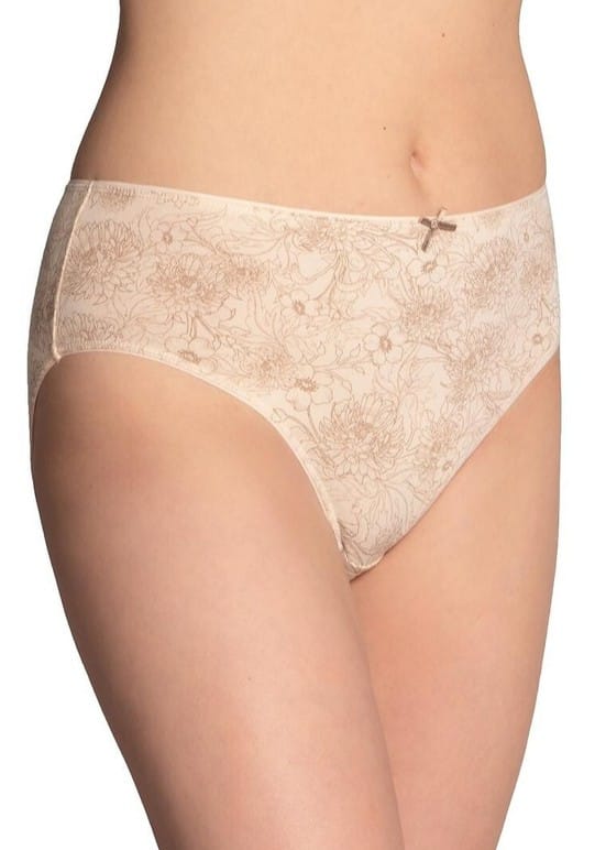 Figi damskie o klasycznym kroju bikini. Wykonane z delikatnej bawełny, idealnie dopasowywują się do ciała. W pasie płaska gumka z kokardką. Pakowane po trzy sztuki. Skład: 95% bawełna, 5% elastan.