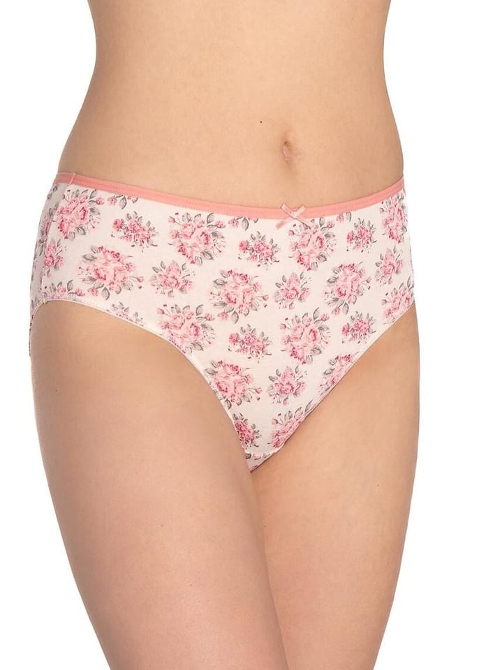 Bawełniane figi damskie o klasyczny kroju bikini z płaską gumką w pasie i kokardką. Biodra lekko zabudowane. Pakowane po 3 szt. Skład: 95% bawełna, 5% elastan.