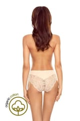 Klasyczne figi z bawełny i delikatnej siateczki z satynowymi przeszyciami oraz z nogawkami wykończonymi koronką o kwiatowym motywie.W talii płaska gumka z połyskującym wykończeniem. Skład: 85% bawełna, 15% elastan; koronka 88% poliamid, 12% elastan.