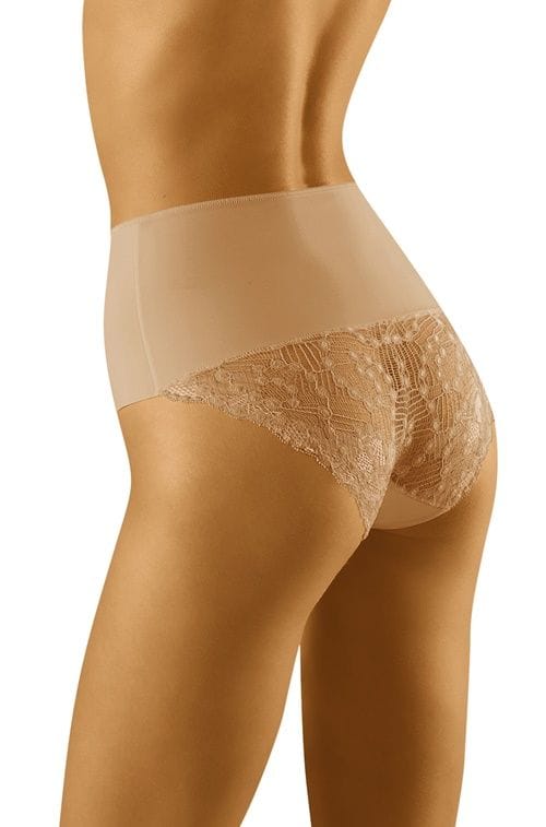 Promessa to subtelnie modelujące sylwetkę, gładkie figi cięte laserowo, o miękkich, płaskich szwach. To bielizna, którą z powodzeniem możesz założyć na co dzień. Idealnie wpasują się pod ubranie, a przy okazji są bardzo wygodne. Krój wyższy, pośladki zdobione delikatną koronką. Skład: 58% poliamid, 42% elastan.