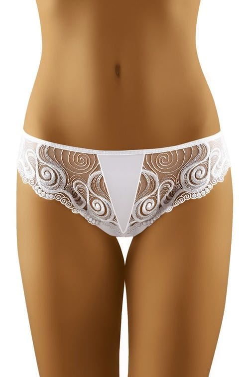 Finezyjne figi damskie wykonane z transparenntego, pięknie haftowanego tiulu. Propozycja bardzo kobieca, nieziemsko zmysłowa i wygodna. Skład: 87% poliamid, 13% elastan.