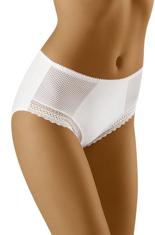 Wygodne figi, których przód zwieńczono ażurowym deseniem a'la kabaretka. Z gładkim tyłem. Fason klasyczny, nieco wyższy, lekko modeluje brzuszek. Okolice ud ładnie zdobione. Skład: 83% poliamid, 17% elastan.