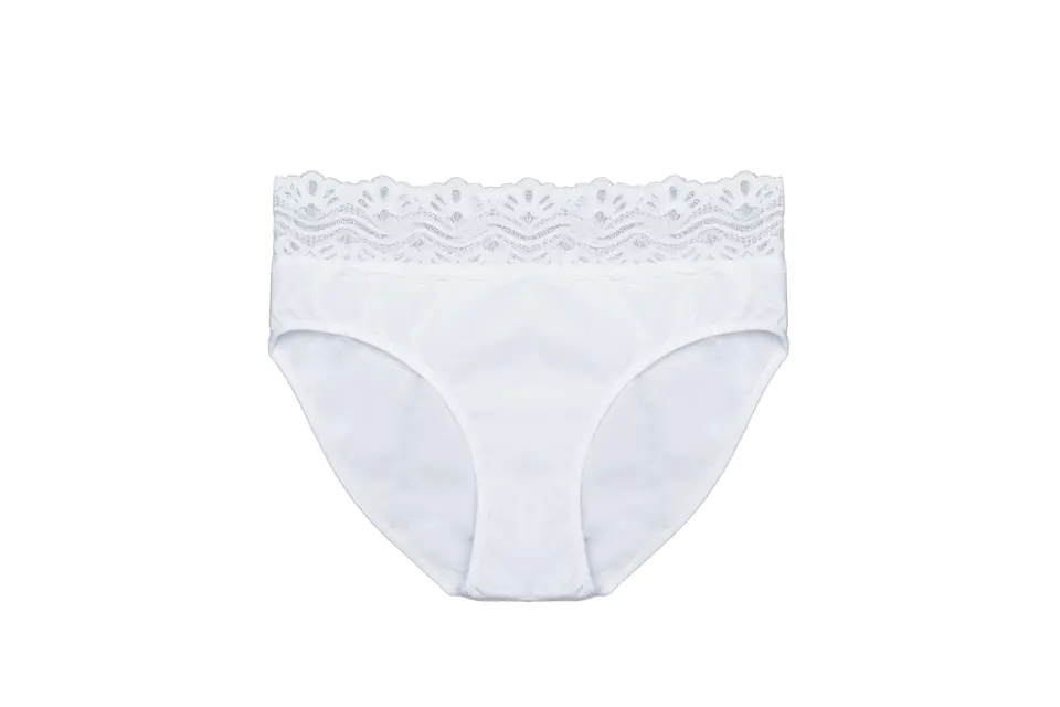 Figi damskie klasyczne, zabudowane wykonane z miękkiej bawełny wykończone wokół talii delikatna koronką. Pakowane po 2 sztuki. Skład: 95% bawełna, 5% elastan.