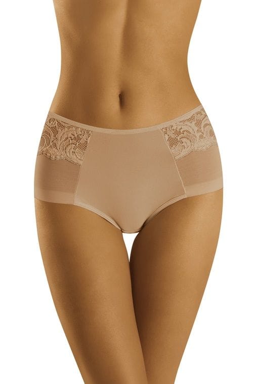 Piękne, kobiece figi wykonane z połączenia delikatnej siateczki, koronki i gładkiej mikrofibry. Fason nieco pełniejszy, zgrabnie się prezentuje. Skład: 83% poliamid, 17% elastan.
