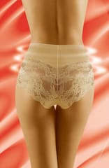 Oto figi, które kuszą piękną, ażurową koronką pnącą się zarówno wzdłuż linii ud, jak i po pośladkach. Fason nieco wyższy, modelujący sylwetkę - bielizna lekko uciskając ciało wyszczupla brzuszek i modeluje linię ud. Koronka zdecydowanie zachwyca spojrzenie i podkreśla pośladki. Bielizna do "zadań specjalnych" jeszcze nigdy chyba nie była tak sexy! Skład: 58% poliamid, 42% elastan.