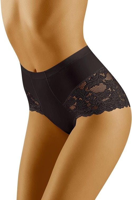 Oto figi, które kuszą piękną, ażurową koronką pnącą się zarówno wzdłuż linii ud, jak i po pośladkach. Fason nieco wyższy, modelujący sylwetkę - bielizna lekko uciskając ciało wyszczupla brzuszek i modeluje linię ud. Koronka zdecydowanie zachwyca spojrzenie i podkreśla pośladki. Bielizna do "zadań specjalnych" jeszcze nigdy chyba nie była tak sexy! Skład: 58% poliamid, 42% elastan.