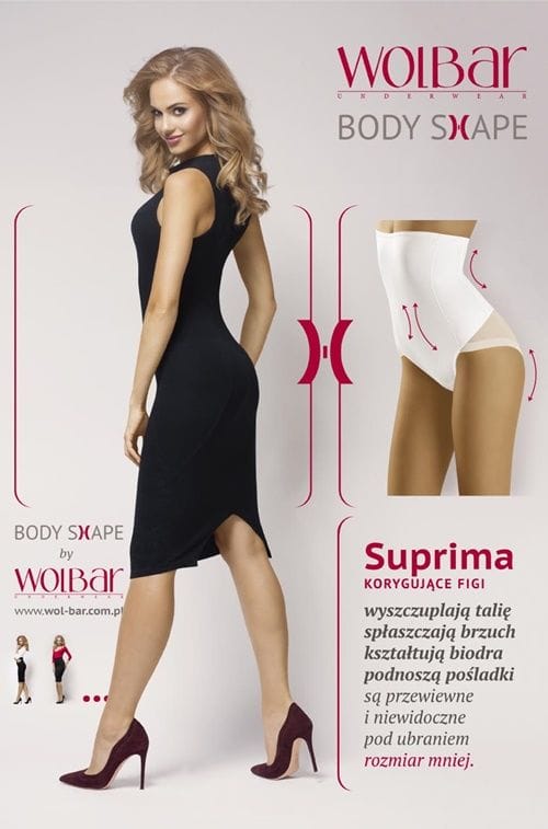 Modelująco-wyszczuplające figi z wysokiej stanem. Uszyte ze ściągającej tkaniny, doskonale profilują sylwetkę, optycznie usuwając niedoskonałości figury. Zaletą są pionowe, długie szwy, które dodatkowo wyszczuplają kobiecą figurę. Tył wykonany z siateczki, która unosi pośladki. Majteczki zakończone silikonową taśmą, która zapobiega zsuwaniu się.