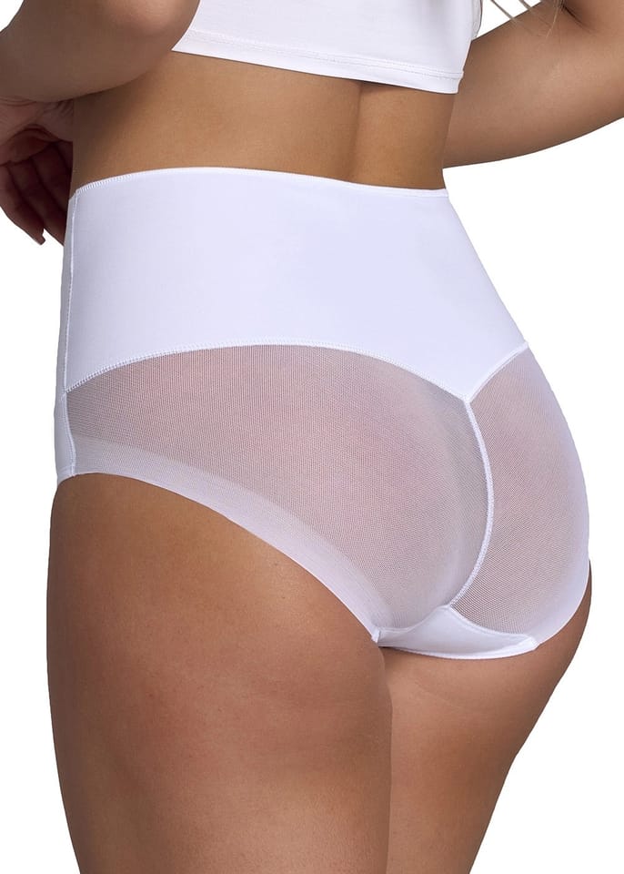 Korygująco-modelujące figi damskie w bardzo kobiecym wydaniu! Przód wzmocniony wysokiej jakości tkaniną, która doskonale wyszczupla brzuszek. Seksowna siateczka z tyłu sprawia, że pośladki są uniesione i nabierają bardzo kuszących kształtów. Płaskie szwy są gwarancją komfortu - nie odznaczają się pod ubraniem.