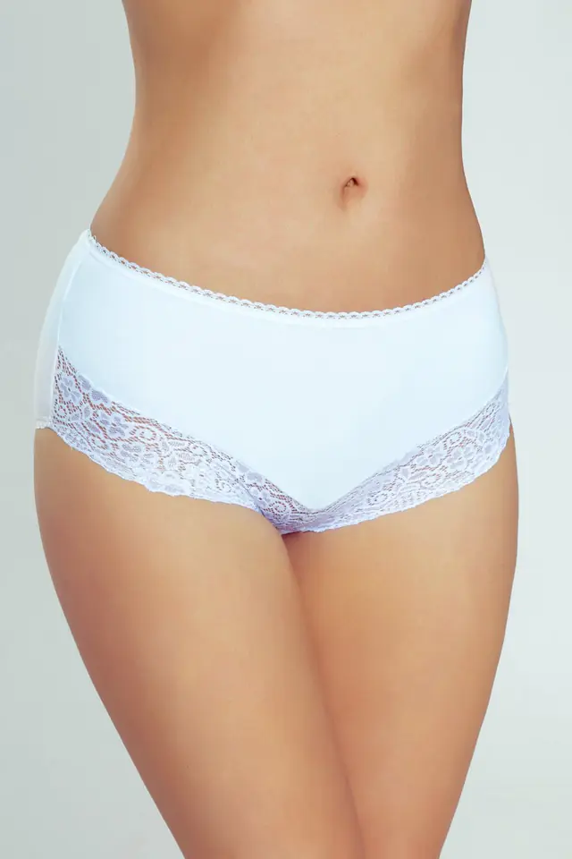 Eleganckie figi wykończone przy udach piękną, ażurową koronką. Model o nieco szerszych bokach. Krój midi. Skład: 80% bawełna, 17% poliamid, 3% elastan.