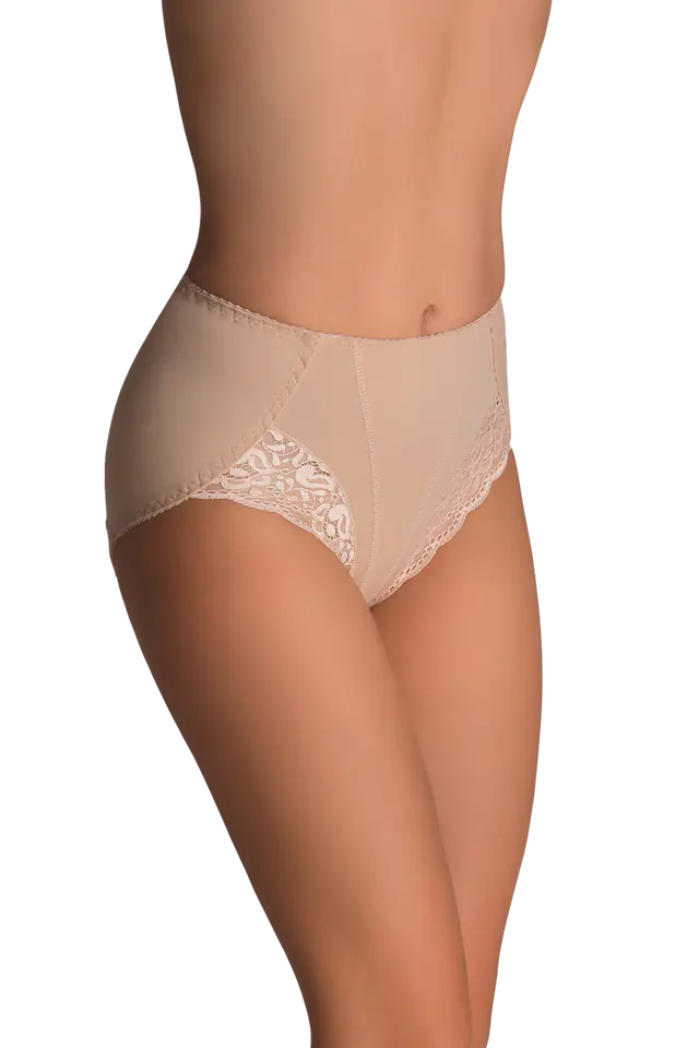 Eleganckie figi, które poprawiają linię ciała. Z pięknym, koronkowym wykończeniem przy linii ud. Uszyte ze ściągającej, elastycznej tkaniny, która modeluje wygląd brzuszka, lekko wyszczuplając go. Propozycja godna polecenia. Skład: 85% poliamid, 15% elastan.