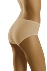Figi damskie z wysokiej jakości bawełny 90% i dodatku włókien elastycznych. Przód zdobią delikatne tiulowe wstawki z efektownym haftem o kwiatowym motywie. Wysokie, zabudowane na biodrach. Tył jednolity.