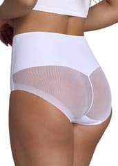 Korygujące figi z wysokiej jakości dzianiny. Przód wzmocniony drugą warstwą dla spłaszczenia brzucha. Specjalny krój i zastosowana siateczka z tyłu zapewnia uniesienie pośladków. Płaskie wykończenia. Skład: 58% poliamid, 42% elastan.