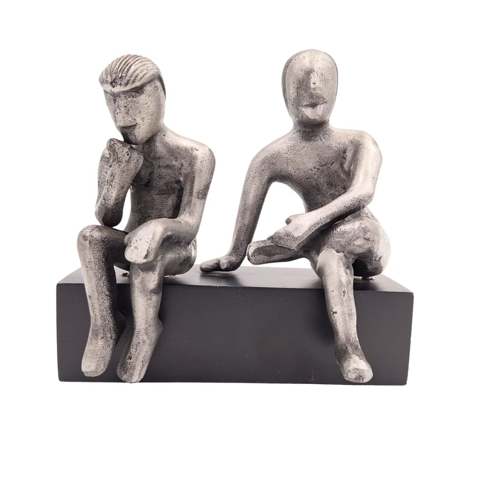 Bliźnięta - znak zodiaku • Figurka aluminiowa na drewnianej podstawie • Wymiary: 18x17x10 cm Figurka dekoracyjna GEM to propozycja dla fanów astrologii urodzonych pod zodiakalnym znakiem Bliźniąt. Figurka ukazuje dualną naturę osób spod tego znaku: z jednej strony pogrążonego w rozmyślaniach, kontemplującego świat myśliciela, z drugiej otwartego, energicznego i gotowego na każdą przygodę ancymonka. Figurka swoją formą i elegancką kolorystyką ozdobi komodę, kominek lub biurko we współczesnym, niesztampowym stylu. Jest to nowoczesna rzeźba do salonu, która z pewnością ucieszy zodiakalnego Bliźniaka.