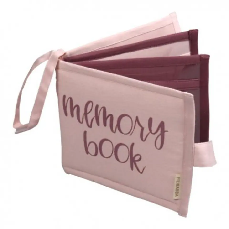 Filibabba Książeczka Memory Rose Materiałowa książeczka do kolekcjonowania wspomnień w postaci zdjęć, na każdej stronie można umieścić zdjęcie dziecka i dodać do niego podpis. Idealna do gromadzenia wspomnień. Świetnie sprawdzi się jako pomysł na prezent. Wymiary 18x15cm FI-B003