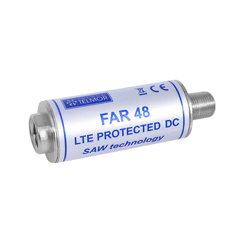----------Dane techniczne----------Zakres częstotliwości w paśmie przepustowym: 47-694 MHzTłumienie w paśmie przepustowym: 4 dBTłumienie w paśmie zaporowym: >18 dB / 698-718 MHz; >26 dB / 718-725 MHz; >30 dB / 725-2600 MHzPrzejście DC: takPrzenoszenie zasilania od strony WYJ. (maks.): 5-24 V DC / 100 mAImpedancja wejściowa: 75 OhmImpedancja wyjściowa: 75 OhmTyp złącza wejściowego: gniazdo FTyp złącza wyjściowego: wtyk FTemperatura pracy: -20~50 stopni CelsjuszaWymiary: 64 mm (długość) x 20 mm (średnica)Waga: 0,045 kg-----------Ogólne-----------FAR 48 to filtr dolnoprzepustowy LTE przeznaczony do wycinania sygnałów zakłócających w zakresie częstotliwości powyżej 694 MHz, w tym sygnałów LTE 700 oraz 5G. Filtr przenosi sygnały w zakresie częstotliwości 47-694MHz, co odpowiada kanałom telewizyjnym oraz radiowym z pasm: FM, VHF, UHF.Filtr przeznaczony jest do pracy wewnątrz pomieszczeń.FAR 48 LTE PROTECTED DC PASS z przejściem napięcia stałego (możliwość zasilania przedwzmacniaczy antenowych)