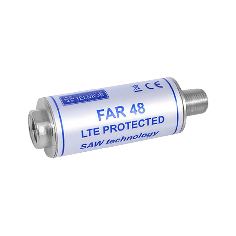 FAR 48 to filtr dolnoprzepustowy LTE przeznaczony do wycinania sygnałów zakłócających w zakresie częstotliwości powyżej 694 MHz, w tym sygnałów LTE 700 oraz 5G. Filtr przenosi sygnały w zakresie częstotliwości 47-694MHz, co odpowiada kanałom telewizyjnym oraz radiowym z pasm: FM,VHF,UHF.