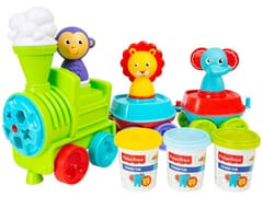 Kreatywny zestaw z masą plastyczną do zabawy z Fisher Price to propozycja dla każdego dziecka lubiącego prace plastyczne, manualne, kreatywne. Kolorowy pociąg wyposażony w mnóstwo wzorów do odciskania, wyciskania masy plastycznej pozwoli na stworzenie nietuzinkowej zabawy. Zestaw składa się z pociągu i dwóch wagoników w których podróżują małpka,słonik i lew. W kominie pociągu znajduje się specjalny wyciskacz do masy plastycznej. Trzeba włożyć kawałeczek masy plastycznej do komina i docisnąć go wałkiem w kształcie chmurki i z przodu lokomotywy pozostanie wyciśnięta ciastolina w wielu kształtach. Koła kolejki mogą być odłączane i nadać się jako kolejne foremki do ciekawych wzorów. Żywe kształty, kolory i ruch pomagają dziecku odkrywać świat!