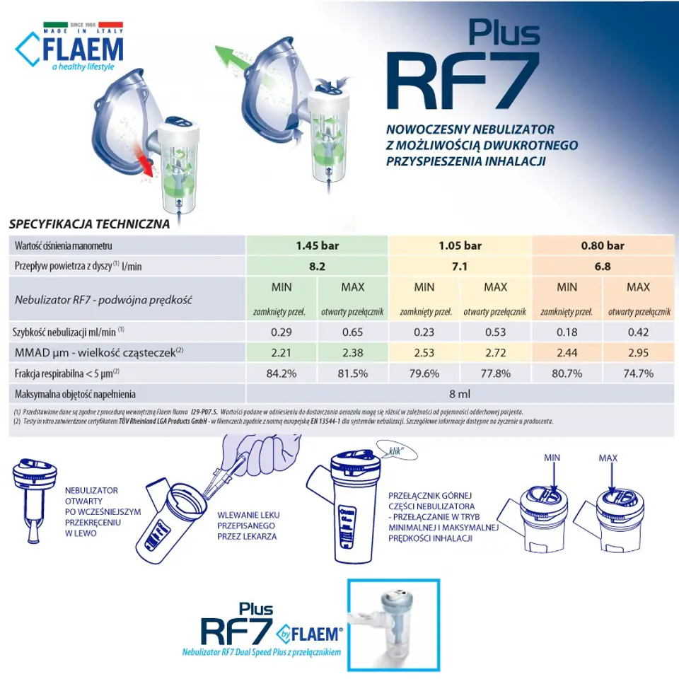 FLAEM RF7 DUAL SPEED PLUS SILVER Nebulizator, z funkcją oszczędzania leku
