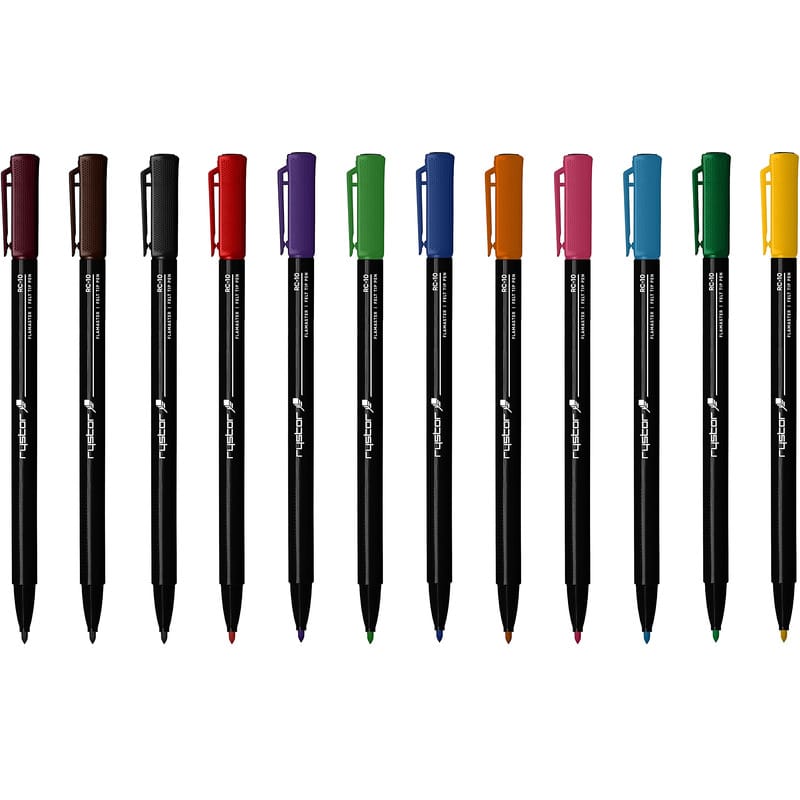 * flamaster RYSTOR RC-10 * stworzony z myślą o dzieciach, uczniach i profesjonalistach * wyposażony w odporną na rozwarstwianie fibrową końcówkę piszącą o grubości 1,0 mm * wentylowana skuwka i obudowa w kolorze tuszu * nasadka posiada wygodny klips * wysokiej jakości tusz na bazie wody * nietoksyczny i bezwonny * odporny na blaknięcie * daje niespotykanie wyraziste, trwałe I intensywne kolory * odporny na wysychanie * flamaster może być pozostawiony bez zatyczki przez wiele dni (nie krócej niż produkty z systemem DRY SAFE INK i CAP OFF) - nie zaschnie zgodnie z wymogami normy ISO 554 * nie rozpuszcza tonera i niezmywalnego tuszu * obudowa, korek obudowy, nasadka wykonane z polipropylenu * korek nasadki wykonany z tworzywa ABS * końcówka pisząca wykonana z fibry * kolory flamastrów: bordowy (symbol: 445-012), brązowy (symbol: 445-009) , czarny (symbol: 445-000), czerwony (symbol: 445-001) , fioletowy (symbol: 445-004), jasnozielony (symbol: 445-007), niebieski (symbol: 445-002), pomarańczowy (symbol: 445-005), różowy (symbol: 445-005), turkusowy (symbol: 445-011), zielony (symbol: 445-003), żółty (symbol: 445-008) * jednostka sprzedaży 1 sztuka * firma RYSTOR to historia polskiego piśmiennictwa i kreślarstwa od 1968 roku - właśnie wtedy została założona w BYDGOSZCZY przez RYSZARDA STACHOWICZA - jako pierwsza i jedyna w POLSCE zaczęła produkować pisaki kreślarskie - jest polskim, rodzinnym producentem cienkopisów, długopisów, markerów oraz rapidografów - łączy najnowsze technologie z wieloletnim doświadczeniem projektantów i pracowników - produkty powstają z najlepszych dostępnych materiałów i półfabrykatów - firma samodzielnie projektuje i testuje każdy nawet najmniejszy element - ponad 50-letnie rapidografy&hellip nadal kreślą i niejednokrotnie są przekazywane z pokolenia na pokolenie - każdy wyprodukowany artykuł pomaga artystom, projektantom, pracownikom biurowym ale także dzieciom, młodzieży i studentom w codziennej pracy, zabawie i wirze kreatywnych uniesień - produkty LENIAR dostępne są nie tylko w całej POLSCE, ale także w EUROPIE i na innych kontynentach