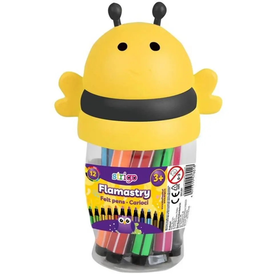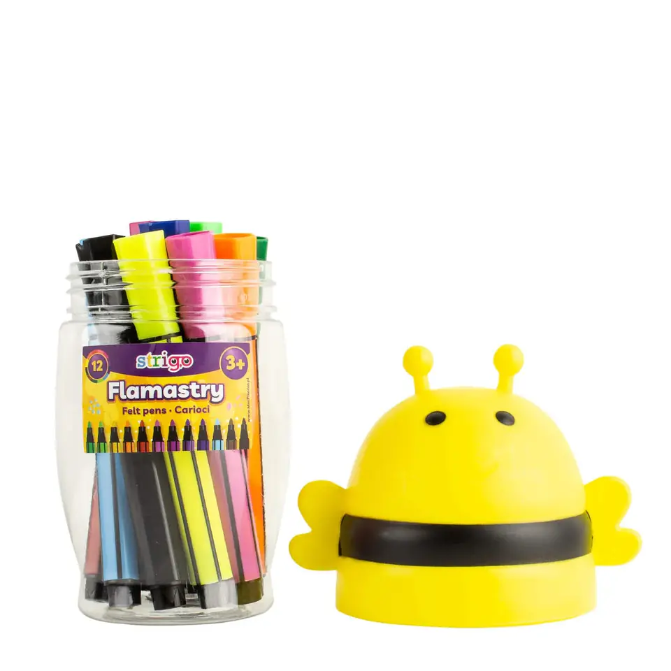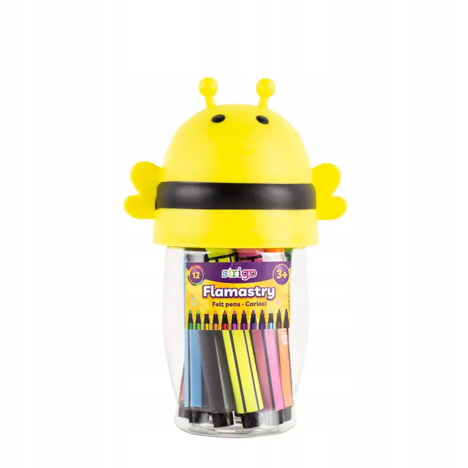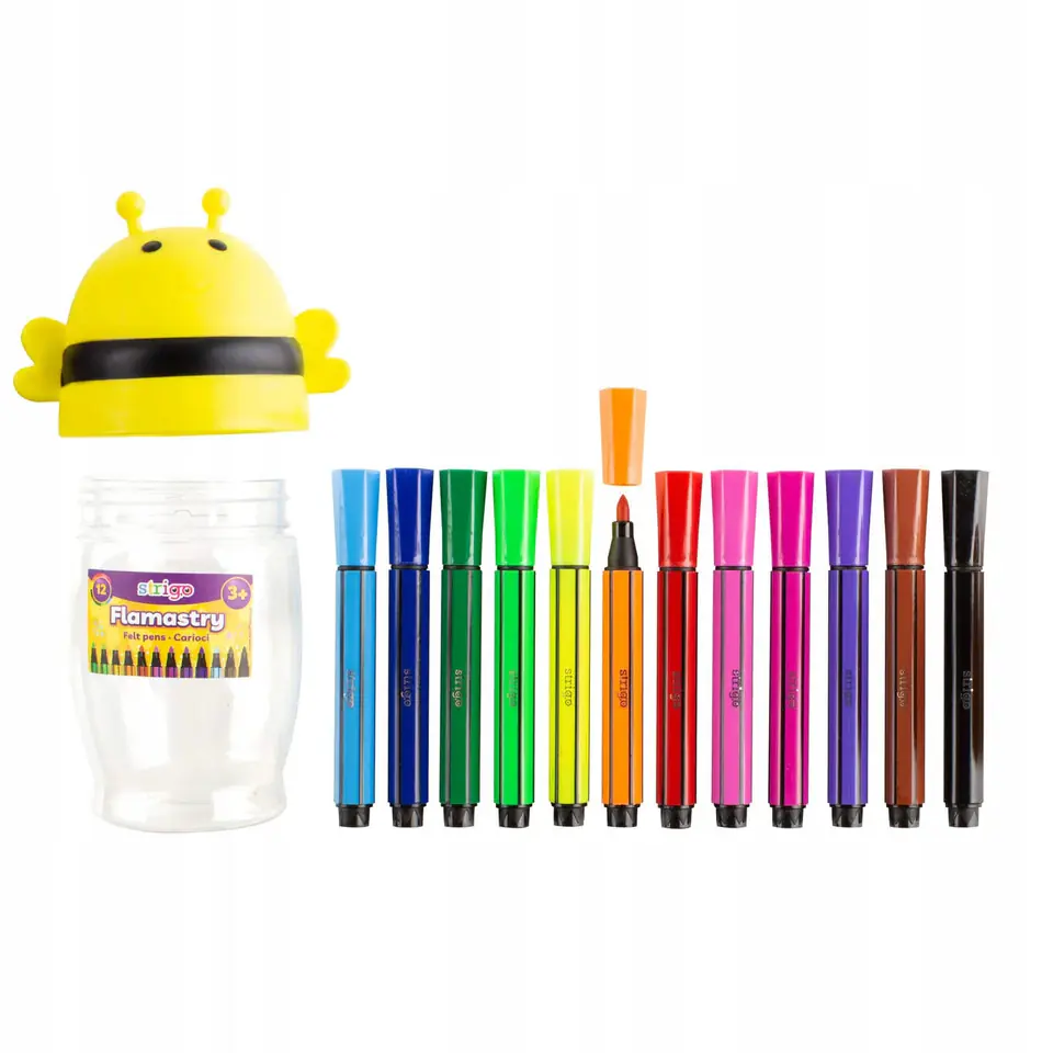 Flamastry STRIGO Jumbo Pszczólka w 12 zywych intensywnych kolorach to produkt, który pokocha kazdy, od pierwszego uzycia, poniewaz są one uniwersalnym narzedziem plastycznym.