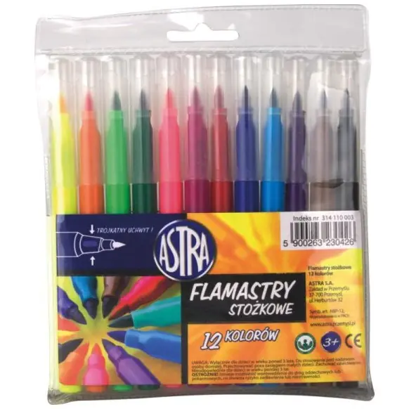 Zestaw flamastrów kolorowych 12 sztuk Astra