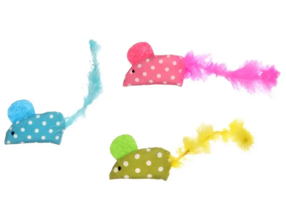 Flamingo Myszka z piórkiemKolor mix - wysyłamy losowo.Zabawka dla kotaPluszowa myszka w kropki i giętki piórkowy ogonek!Bardzo lekka i idealna do kociej gonitwy!Zawiera kocimiętkę.Wymiary: myszka 7 cm, ogonek ok. 8 cm.Wysoka jakość wykonania.