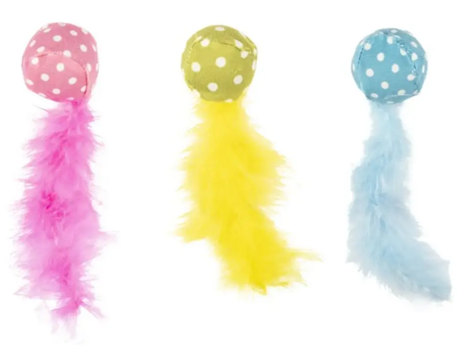 Flamingo Piłeczka z piórkiemKolor mix - wysyłamy losowo.Zabawka dla kotaTwarda piłeczka w kropki i miękki piórkowy ogonek!Bardzo lekka i idealna do kociej gonitwy!Zawiera grzechotkę!Wymiary: średnica piłeczki ok. 4 cm, długość ogonka ok. 10 cm.Wysoka jakość wykonania.