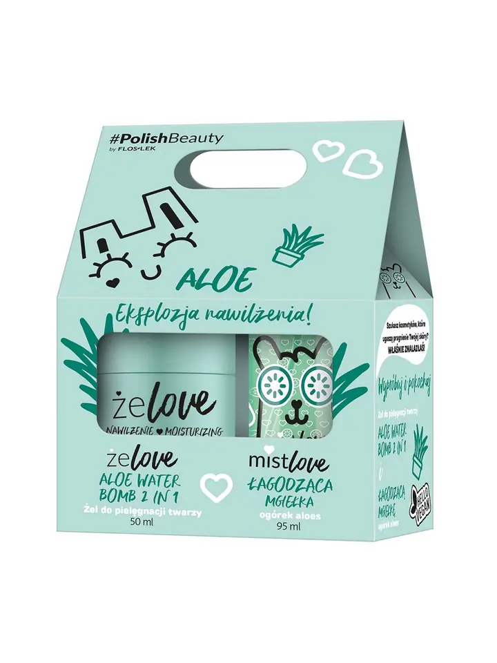 Zestaw nawilżający do pielęgnacji twarzy, szyi i dekoltu, ŻELOVE® NAWILŻENIE ALOE WATER BOMB 2 W 1 + MISTLOVE ŁAGODZĄCA MGIEŁKA OGÓREK, ALOES