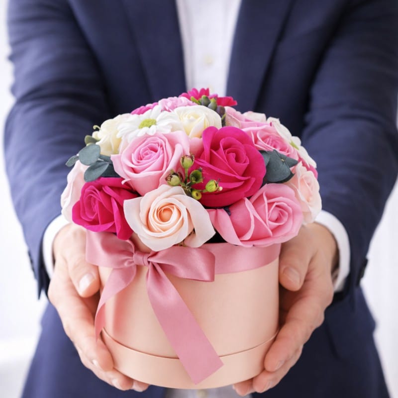 Flower box, bukiet zapachowych kwiatów mydlanych w pudełku 16х16x23cm BUK23