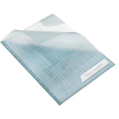 Folder z unikalnym skladanym paskiem z otworami do wpiecia w segregator. Zabezpiecza dokumenty przed wypadaniem dzieki naroznej kieszonce u góry oraz cześciowemu sklejeniu bocznej krawedzi, z boku z prawej strony. Atrakcyjne wzornictwo i tloczenie na folii polipropylenowej.