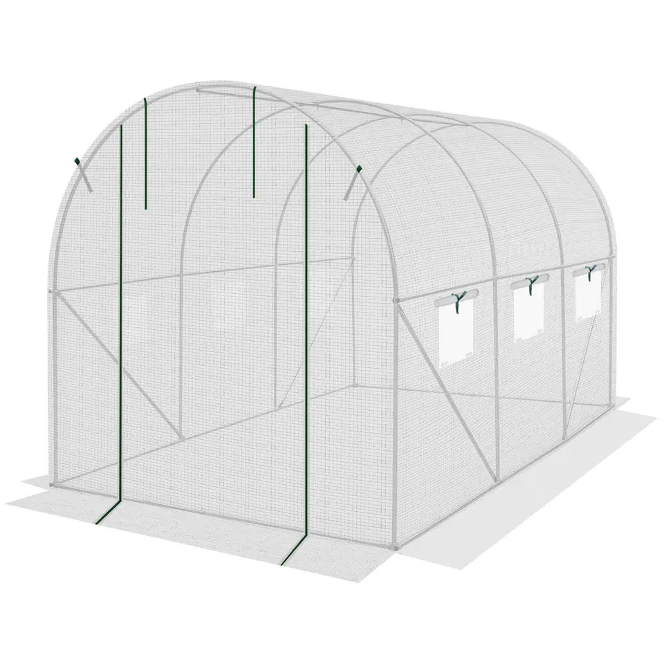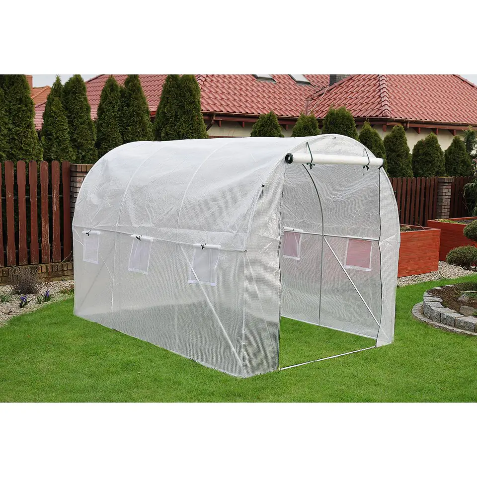 Folia posiada 6 okien z moskitierami i zasłonkami z folii, które chronią przed nadmiarem wilgoci zapewniając jednocześnie optymalny przepływ powietrza i odpowiedni dostęp do światła. Posiada szerokie na 120 cm drzwi zamykane na zamek, które pozwolą wygodnie wychodzić lub wchodzić do środka.