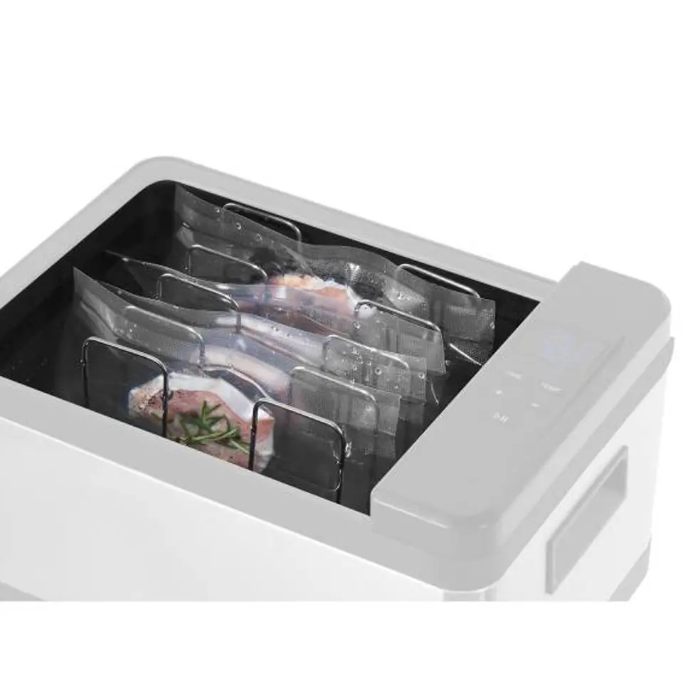 Nazwa producenta: RCVR-SET 5 Zestaw moletowanych worków próżniowych w rolkach (4 szt.) o szerokości 30 cm nadaje się do pracy z pakowarkami listwowymi oraz komorowymi. Długie rękawy (600 cm każdy) można uciąć w dowolnym miejscu, tak aby z łatwością dostosować wielkość woreczków do pakowanego produktu. Specjalna struktura kanałów punktowych sprawia, że powietrze jest usuwane szybciej niż w przypadku innych rozwiązań tego typu. Dzięki temu woreczki znajdą zastosowanie przy pakowaniu żywności, płynów, leków, a nawet dokumentów, biżuterii czy elektroniki.Wielowarstwowa powierzchnia o grubości 105 μm została wykonana z wytrzymałego materiału PE/PA. Gwarantuje to dużą odporność woreczków na rozdarcia i przebicia. Są one również wytrzymałe na zmianę temperatur, dzięki czemu można je przechowywać w zamrażarce i podgrzewać w mikrofali. Wykorzystany materiał jest wolny od substancji szkodliwych m.in. BPA, ftalanów i ołowiu, co pozwoli na uzyskanie certyfikatów LFGB oraz FDA.Cechy: