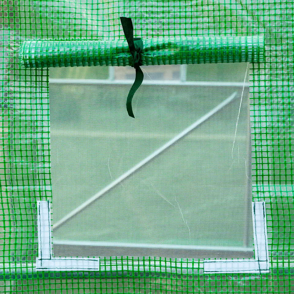 6 zamykanych na rzepy okien z moskitierami pozwala odpowiednio regulować temperaturę i wilgotność powietrza wewnątrz tunelu tworząc pożądane warunki dla wzrostu uprawianych roślin