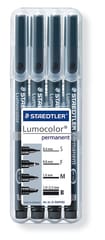 Foliopis LUMOCOLOR zestaw 4grubości Zestaw uniwersalnych pisaków do pisania na foliach do rzutników i po prawie wszystkich powierzchniach.