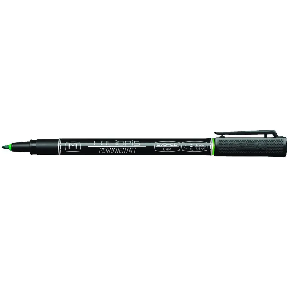 Foliopis permanentny, wodoodporny. Idealny do pisania na prawie wszystkich powierzchniach gladkich takich jak szklo, plastik, metal, porcelana, folia, plytach CD/DVD itp.
