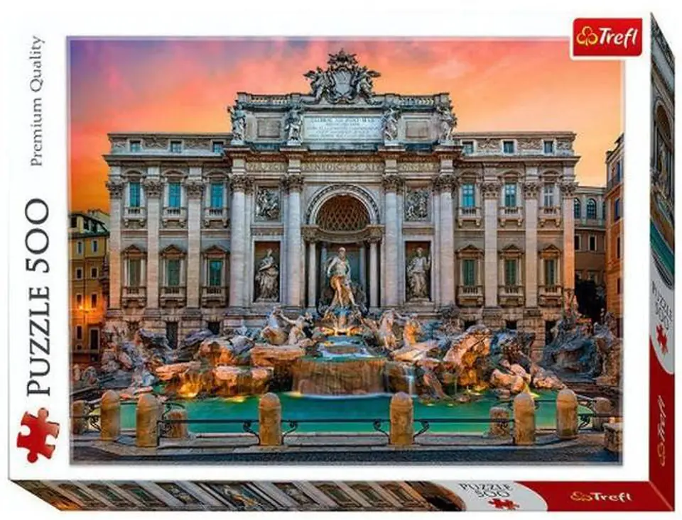 Puzzle 500 elementów ze wspaniałą, rzymską Fontanna di Trevi. Niezwykle piękne zdjęcie zachwyci nawet najbardziej wymagających fanów puzzli. Po ułożeniu powstanie obrazek o wymiarach 48 x 34 cm.