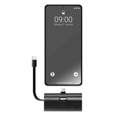 - Ładowanie dwóch urządzeń jednocześnie: Port USB-C oraz wbudowany kabel pozwalają na jednoczesne ładowanie dwóch urządzeń.