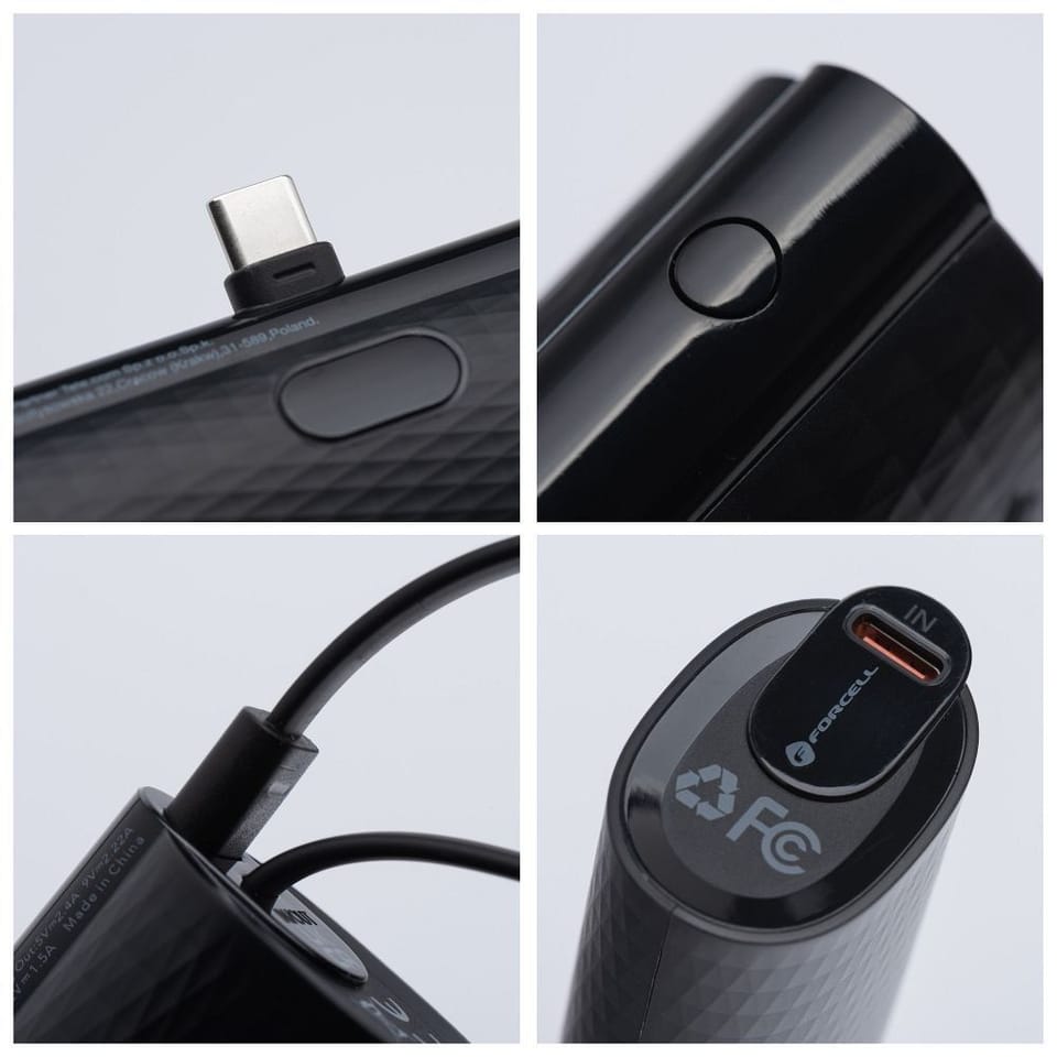 FORCELL F-ENERGY F5K3 to innowacyjny powerbank zaprojektowany z myślą o wygodzie i funkcjonalności. Dzięki pojemności 5000 mAh oraz mocy 20 W, doskonale nadaje się do szybkiego ładowania urządzeń mobilnych. Wbudowane złącze Typ C eliminuje konieczność korzystania z dodatkowych kabli, zapewniając wygodę użytkowania.